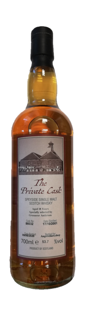 This private cask is bottled exclusively for Angelsshare.shop, and specially selected by Grosserer Andersen. The Private cask is 18-year-old single malt whiskey stored on used casks where Bourbon whiskey has previously been stored.