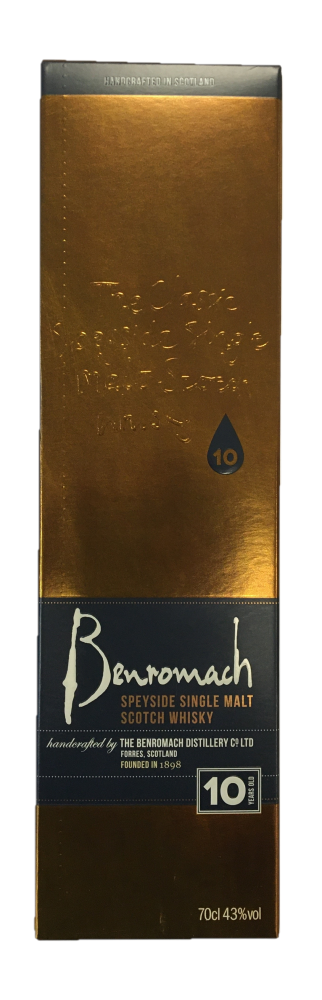 In the storage, a mixture of bourbon and sherry casks is used. Finally, the Benromach 10 Year Old gets a one-year finish on oloroso sherry casks.