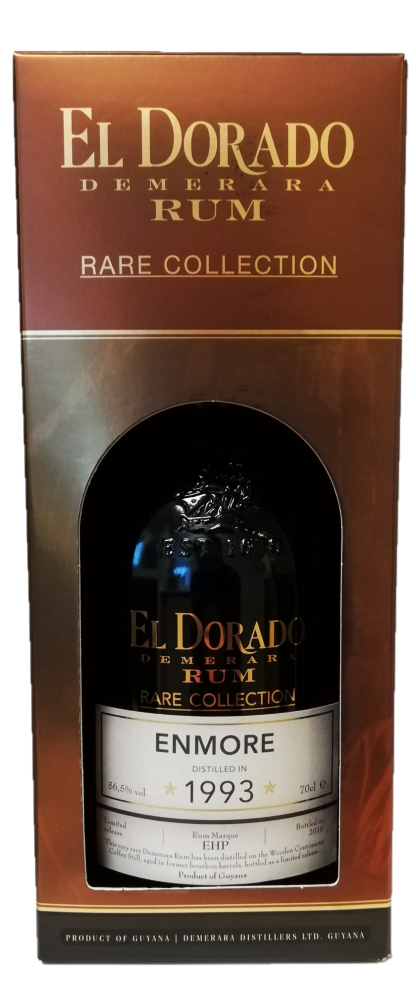 El Dorado Enmore 1993 Rare Collection er fremstillet af Demerara Distillers Limited (DDL) i Guyana, og her besidder man de eneste tilbageværende destilleringsapparater af træ: Enmore (wooden continuous coffey still), Port Morant (wooden double pot still) og Versailles (wooden single pot still).