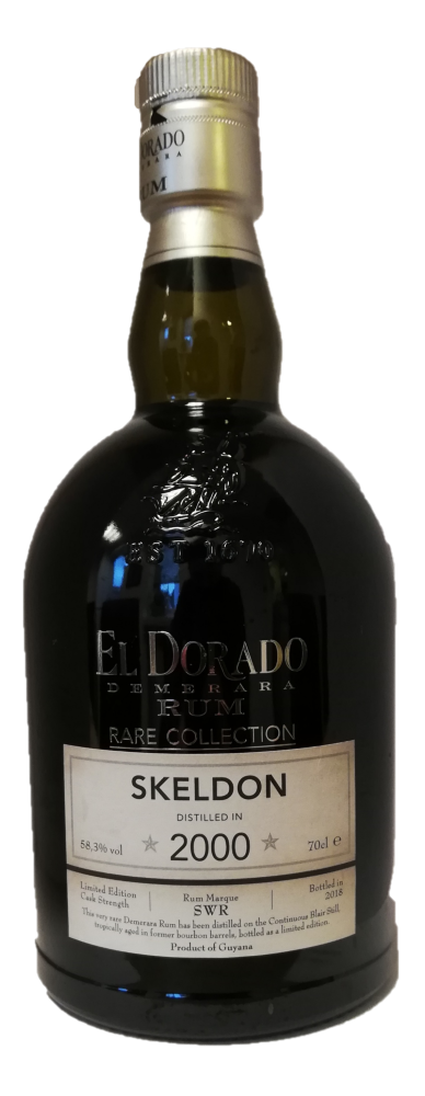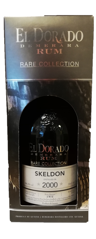 El Dorado Skeldon 2000 Rare Collection Rum er tropisk lagret i 18 år og tappet ved fadstyrke på 58,3%. Duft: tørret abrikos, rosin, mandel, valnød og hasselnød. Smag: honning, vanilje og egetræ.