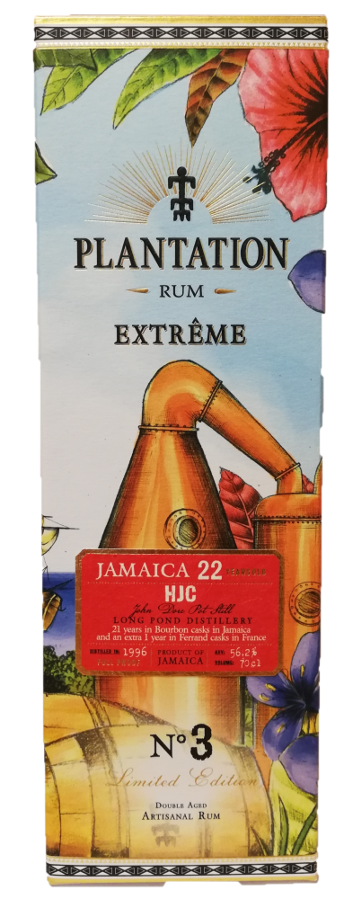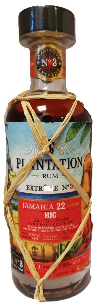 Plantation Extreme er en serie af ekstraordinære rom, som kældermesteren hos Plantation udpeger til at være for unikke til at blende med andre fade. Det kan både skyldes særegne karakteristika eller exceptionel kvalitet. Denne jamaicanske rom fra det sagnomspundne destilleri, Long Pond, har fået anmærkningen ”HJC”, et såkaldt ”marque / mark” som angiver indholdet af estere i destillatet. HJC angiver et esterindhold mellem 120 og 150 gram per hektoliter ren alkohol. Men efter 22 års lagring er esterniveauet i denne rom steget til 345 gram per hektoliter ren alkohol! En kæmpe romoplevelse for både nørder og nybegyndere.